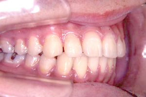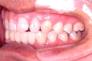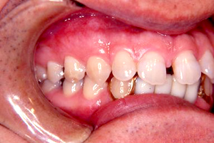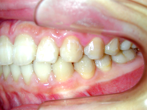 咬みあわせが異常に深い場合には、下顎の歯が上顎口蓋の歯肉に強く当たり、炎症が起きたり、歯肉が傷つくこともよくみられます。