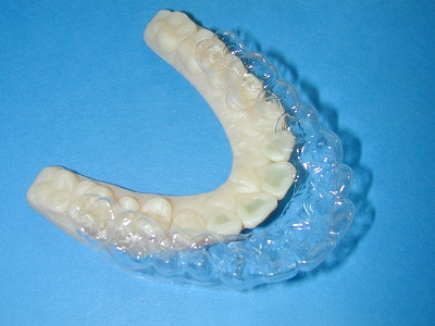 アソアライナーの外見は歯の部分は完全に覆われ歯肉を4~5mm覆う形態になっています